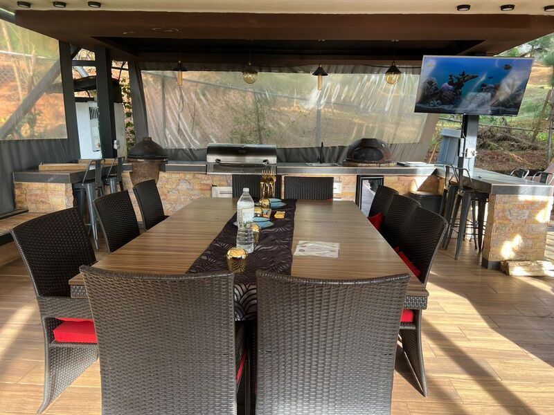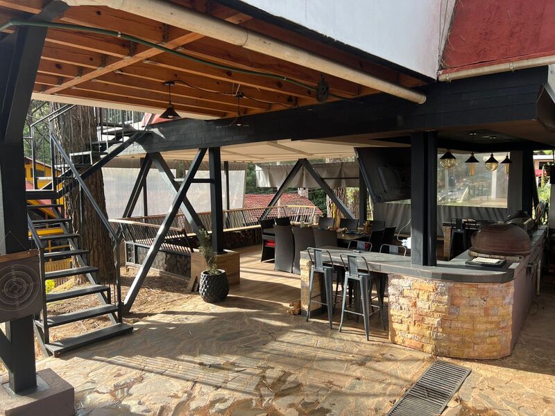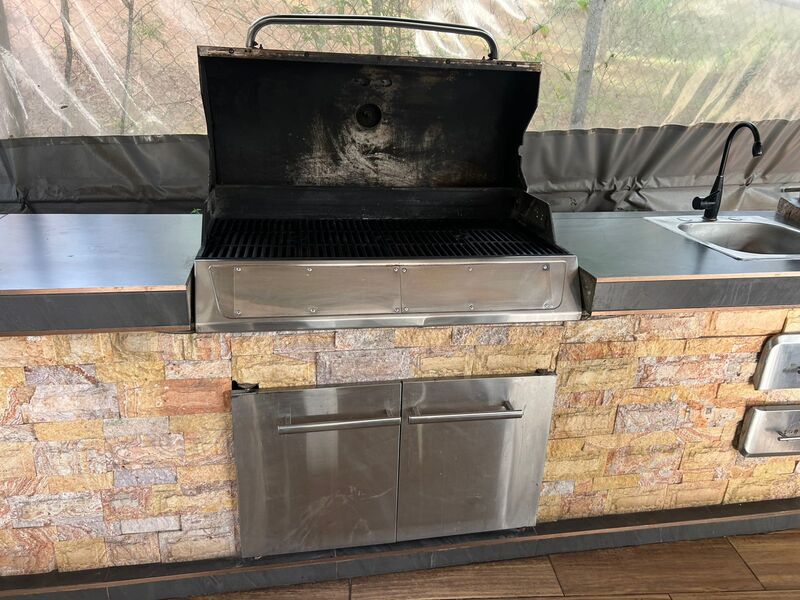 terraza con barra de asadores diversos