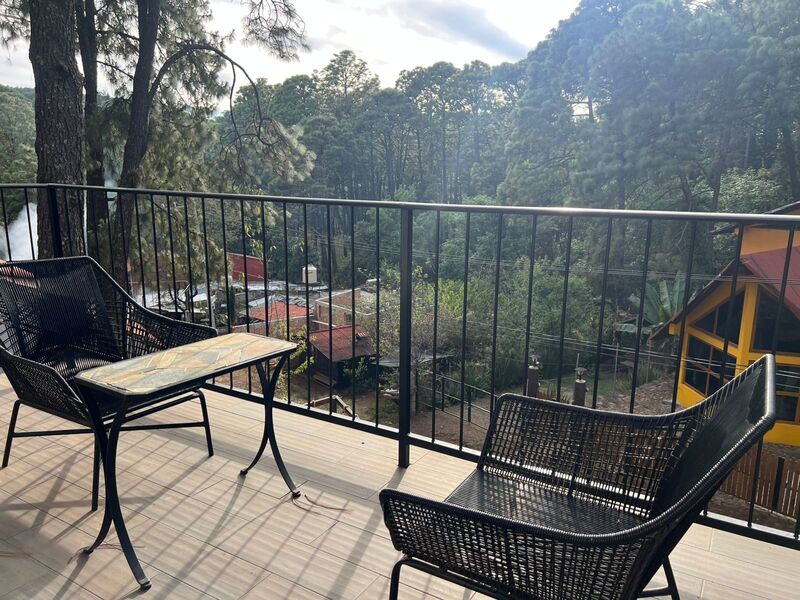 Balcón con sillones con vista panorámica al bosque