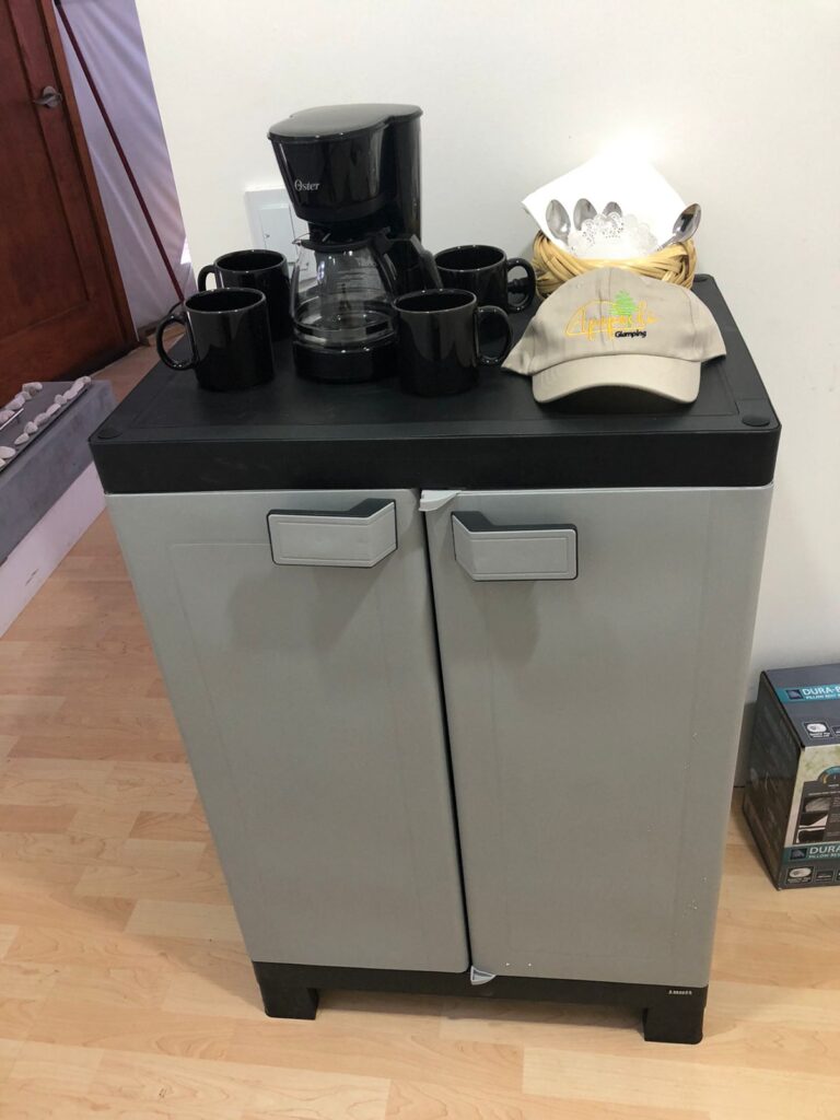 -Agua, kit de snacks, cafetera y galletas de cortesía