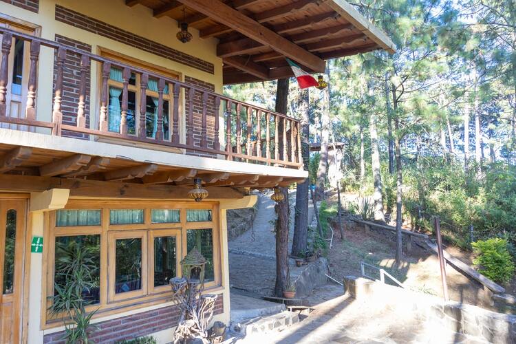 Hermosa cabaña a dos plantas ubicada dentro de fraccionamiento Los cazos en zona boscosa.