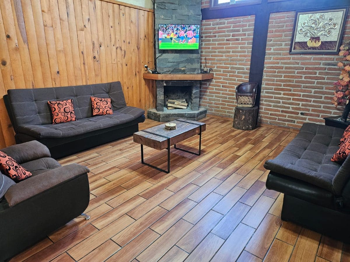 Amplia sala con 2 cómodos sofas cama, sillón individual, mesa de centro, chimenea, Smartv 40" con Vetv y wifi.