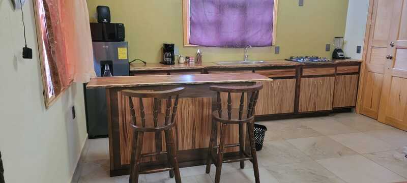 Como servicios: una carga de leña, utensilios de cocina en su totalidad desde para asar carne hasta ollas y sartenes, así como amenidades y todo lo indispensable para el sanitario.