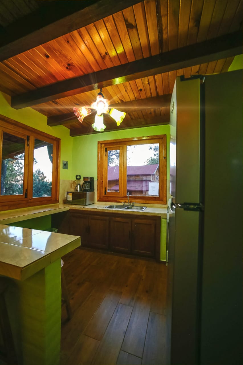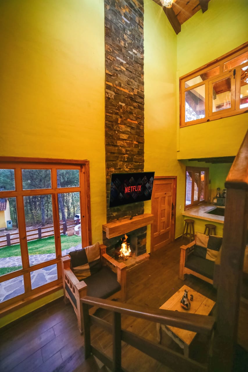 Cuenta con sala con su chimenea, cocina, barra desayunadora, Tv con cable, internet,