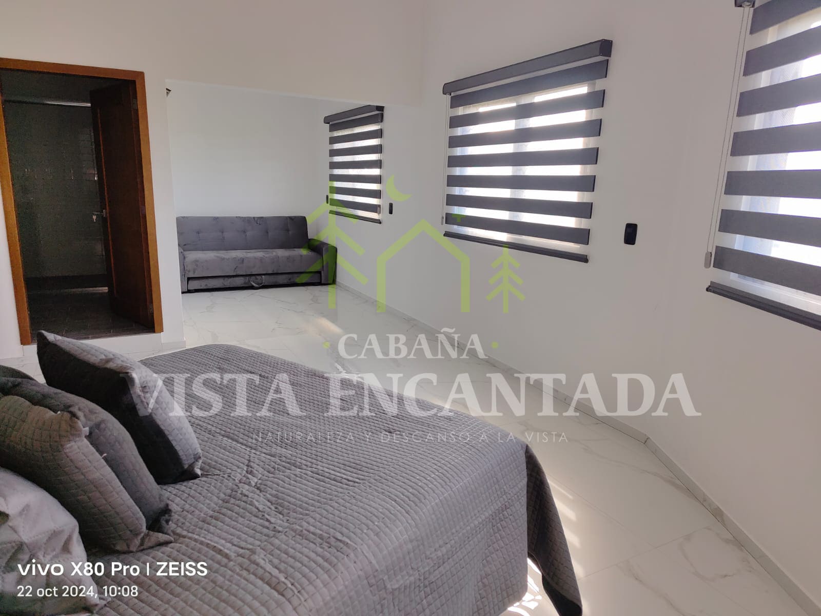 – 1 recámara principal con 1 cama queen, 1 sofá cama, 1 baño completo privado.