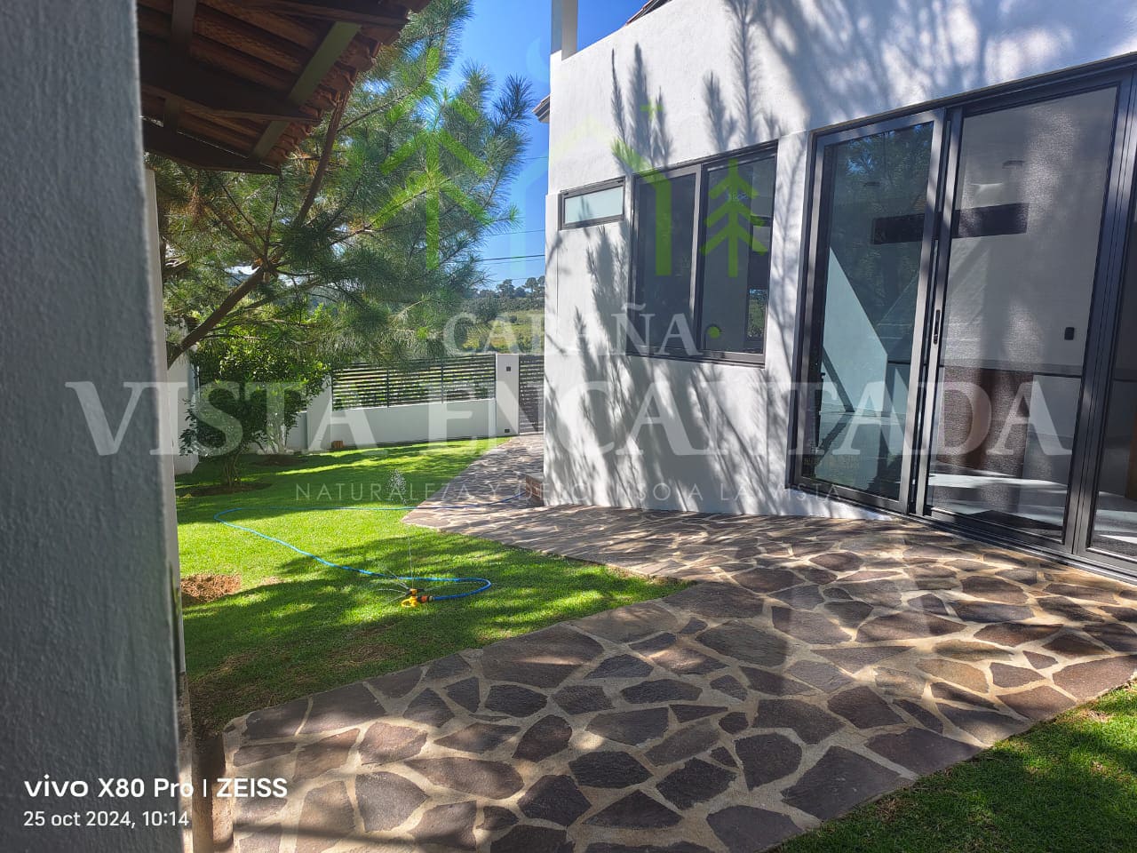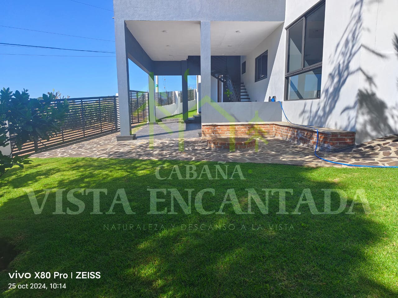 En el jardín, con área de asador Weber.