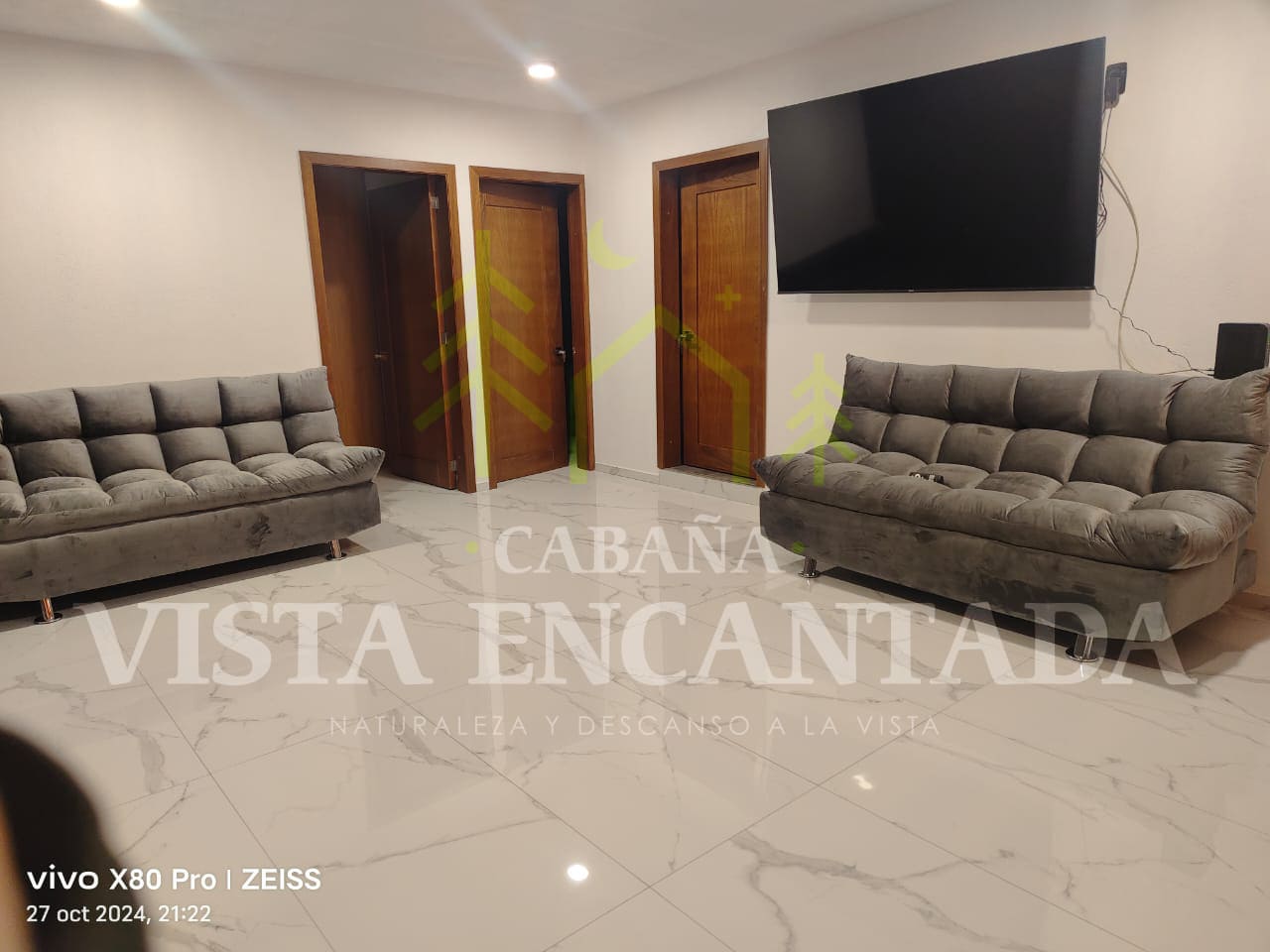 – 1 sala con 2 sofa-cama, y 1 pantalla de 75 pulgadas.