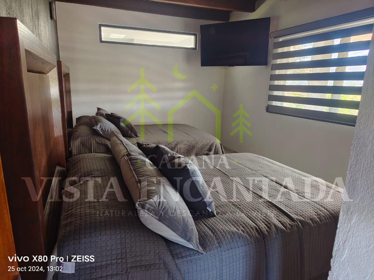 – 1 recámara con 2 camas matrimoniales y pantalla de 55 pulgadas.