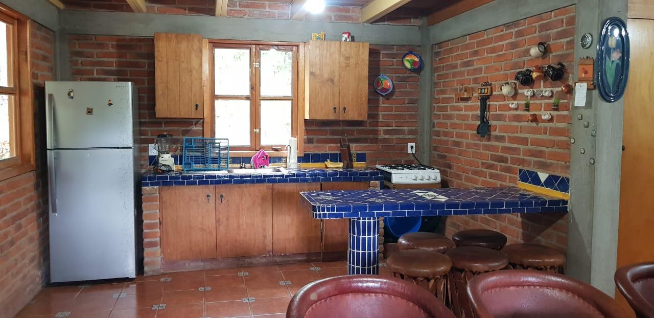 Cocina con utensilios para cocinar (Cuenta con estufa de gas, licuadora, microondas, refrigerador)