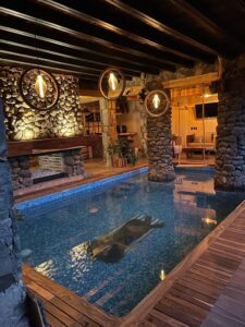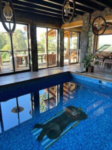 Alberca climatizada e iluminada con columpio