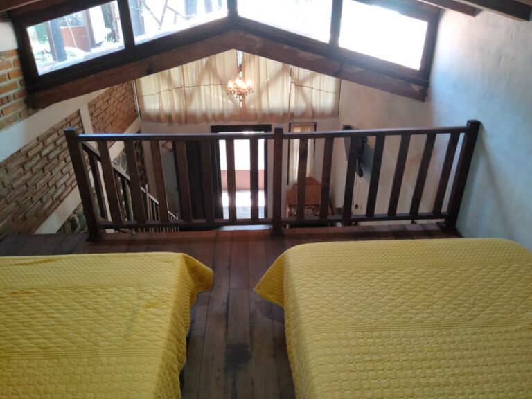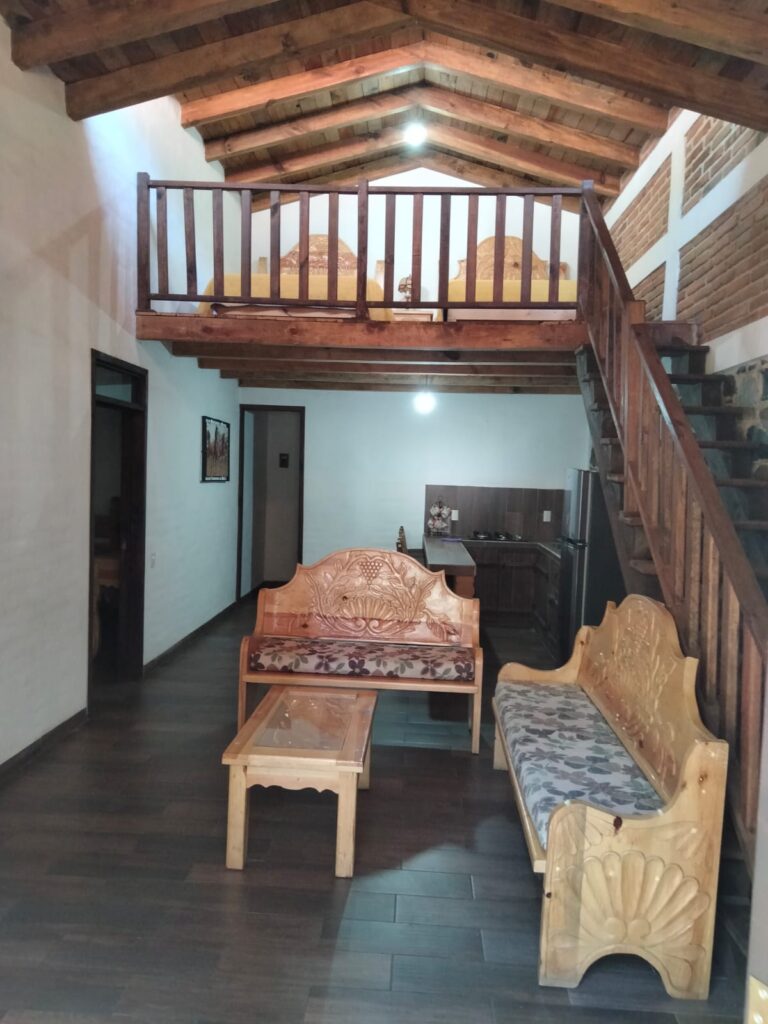 Cuenta con 1 Cama king size baño completo jacuzzi Sala cocina chimenea 1 tapanco con Cama king size terraza asador estacionamiento wifi y disco para las discadas.