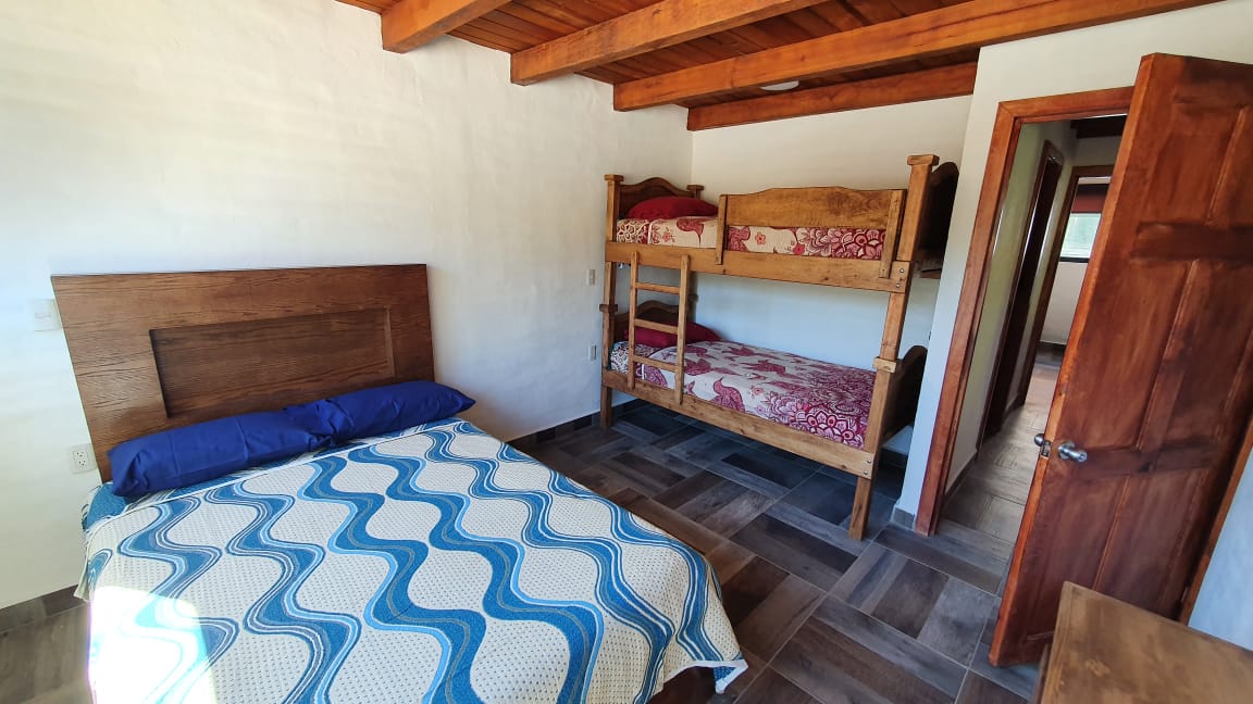 La segunda recamara cuenta con 1 cama King Size y ahí mismo se encuentra un tapanco en la parte de arriba, con 2 colchones individuales y terraza afuera de esa recamara.