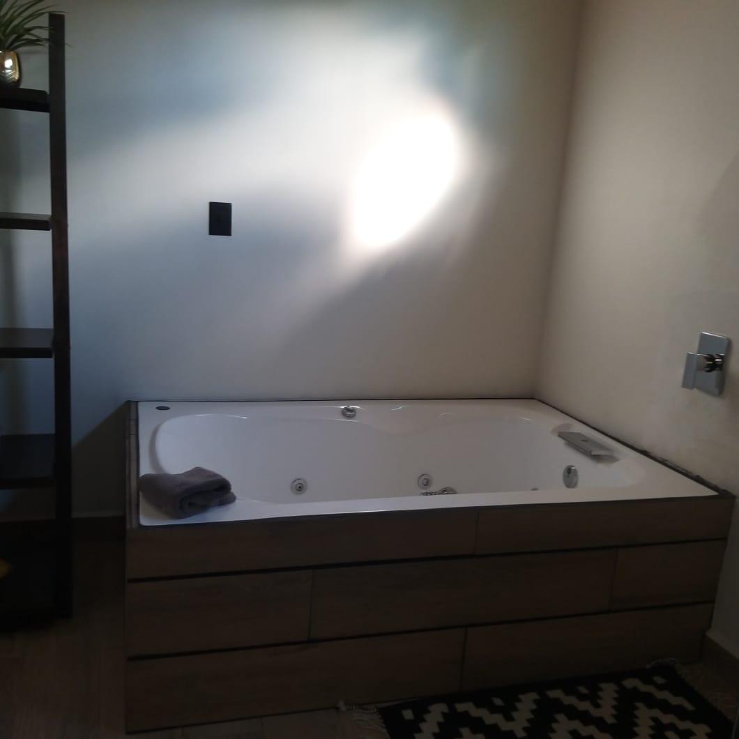 Hermosa cabaña la cual cuenta con 2 recamaras, 2 tapancos, de las cuales 1 recamara esta conformada por una cama King Size y baño completo principal, antes de entrar a la otra recamara pordrán encontrar un tapanco con colchón matrimonial y otro baño completo.