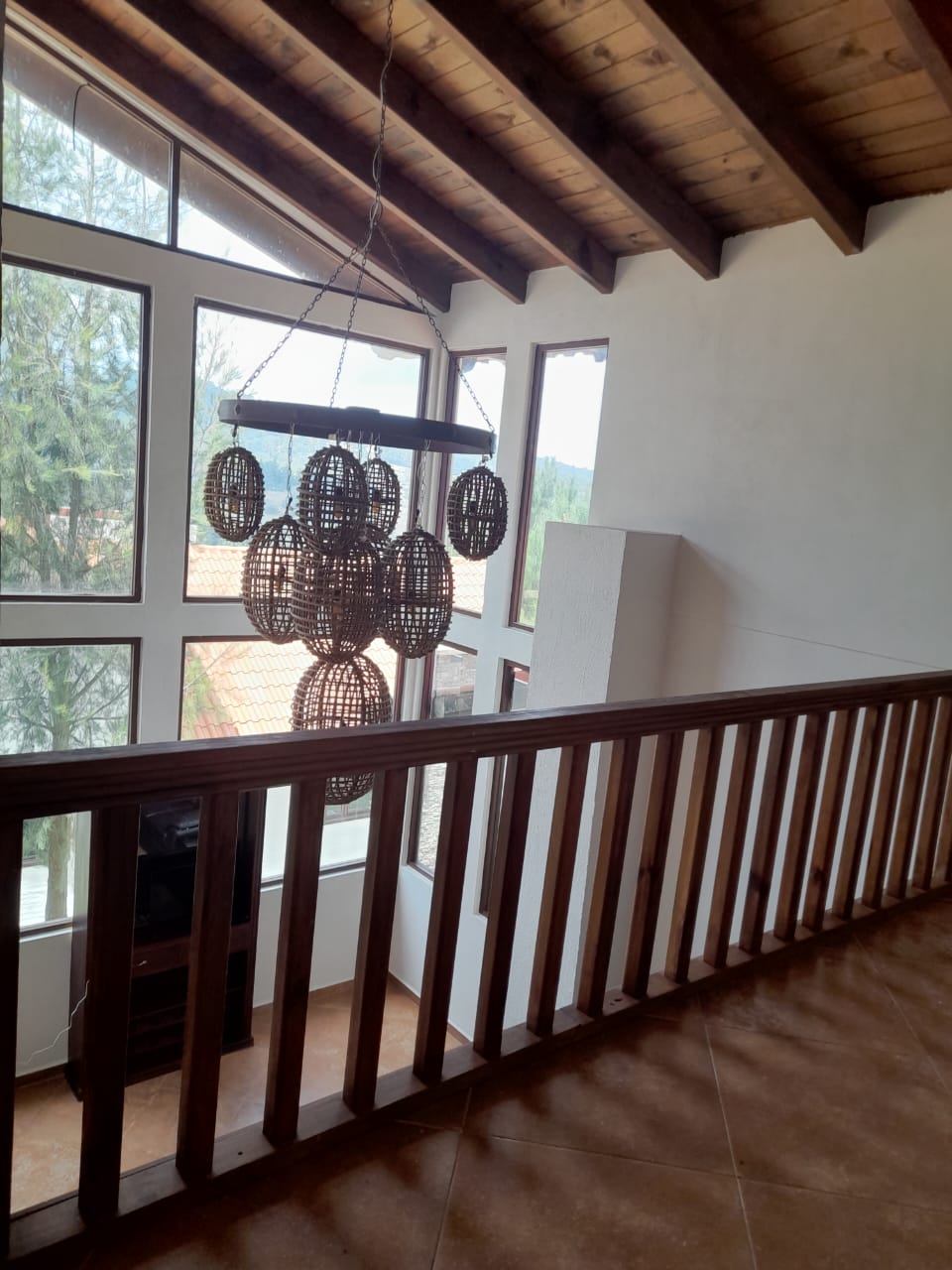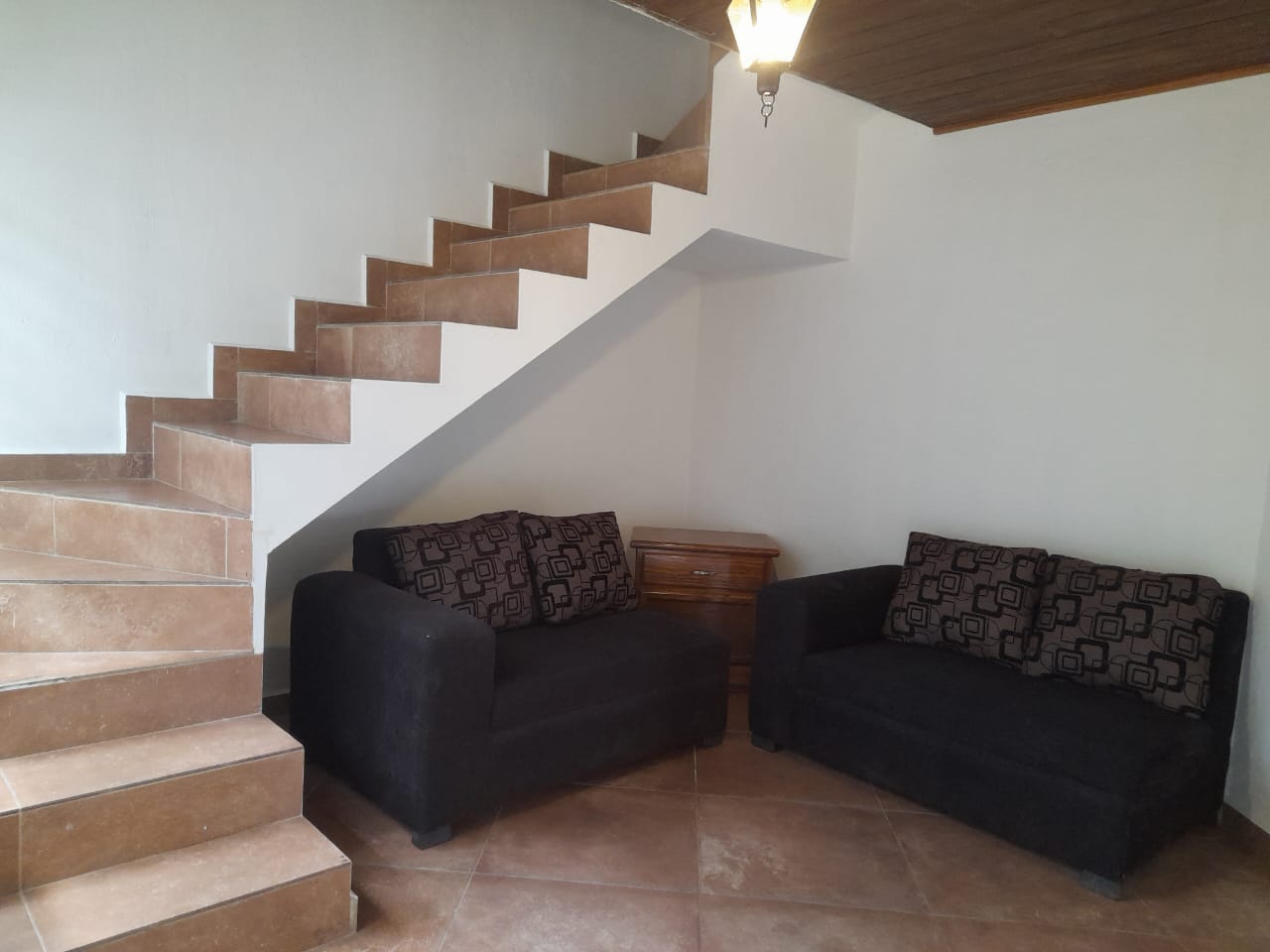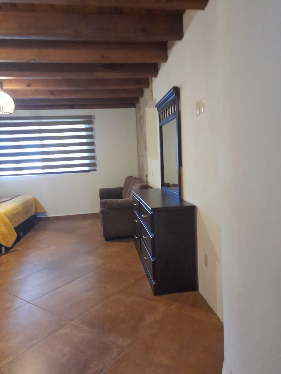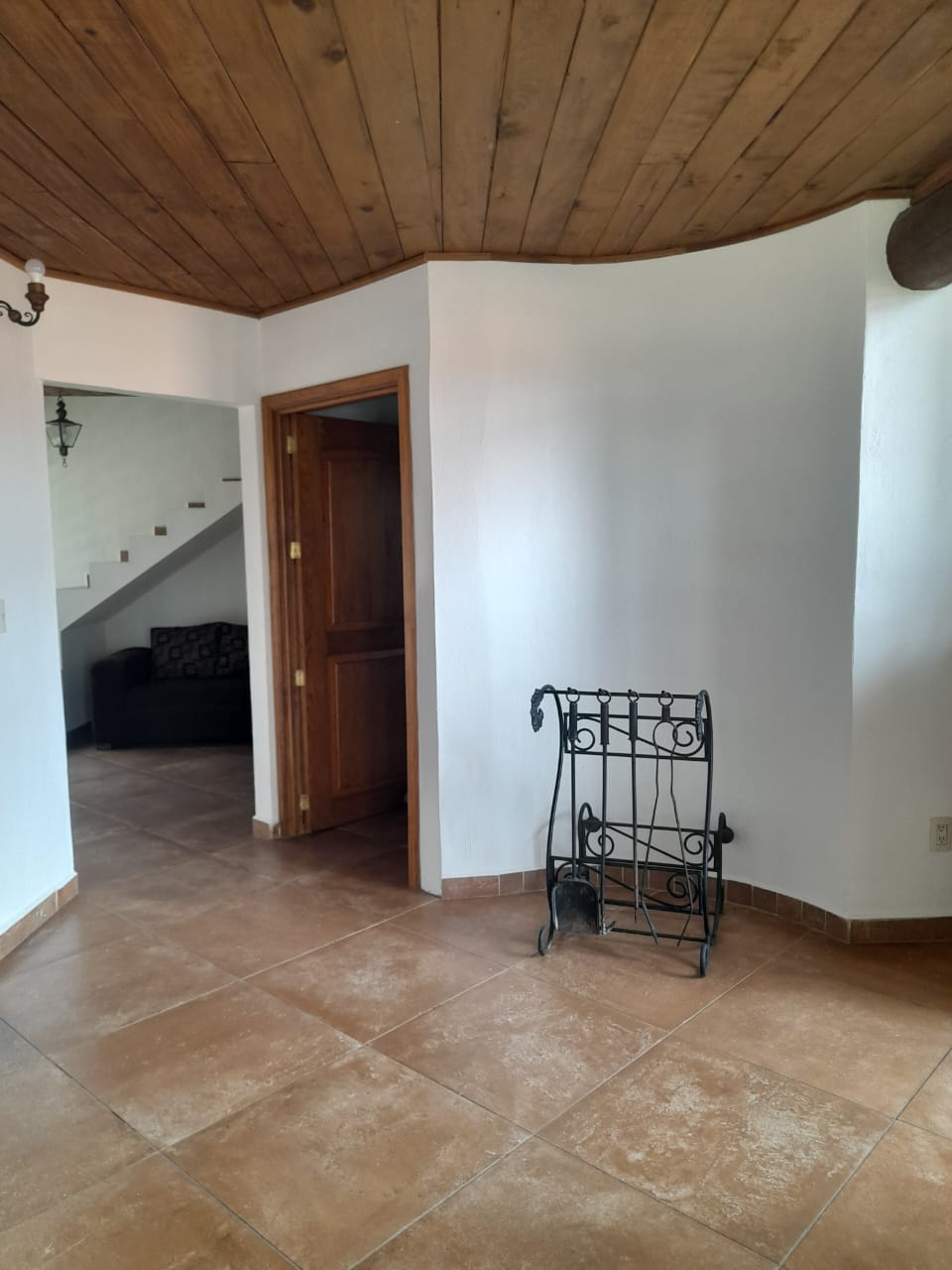 Planta baja cocineta pequeña, baño completo, chimenea, sofá cama (como para 2 personas), baño completo. En el exterior podemos encontrar una bonita terraza, asador, fogatero movible y fogatero en la planta del estacionamiento.