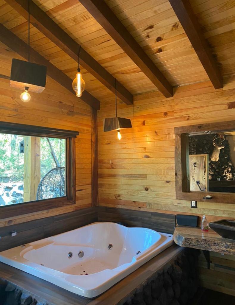 Hermosa cabaña lujosa, que cuenta con: