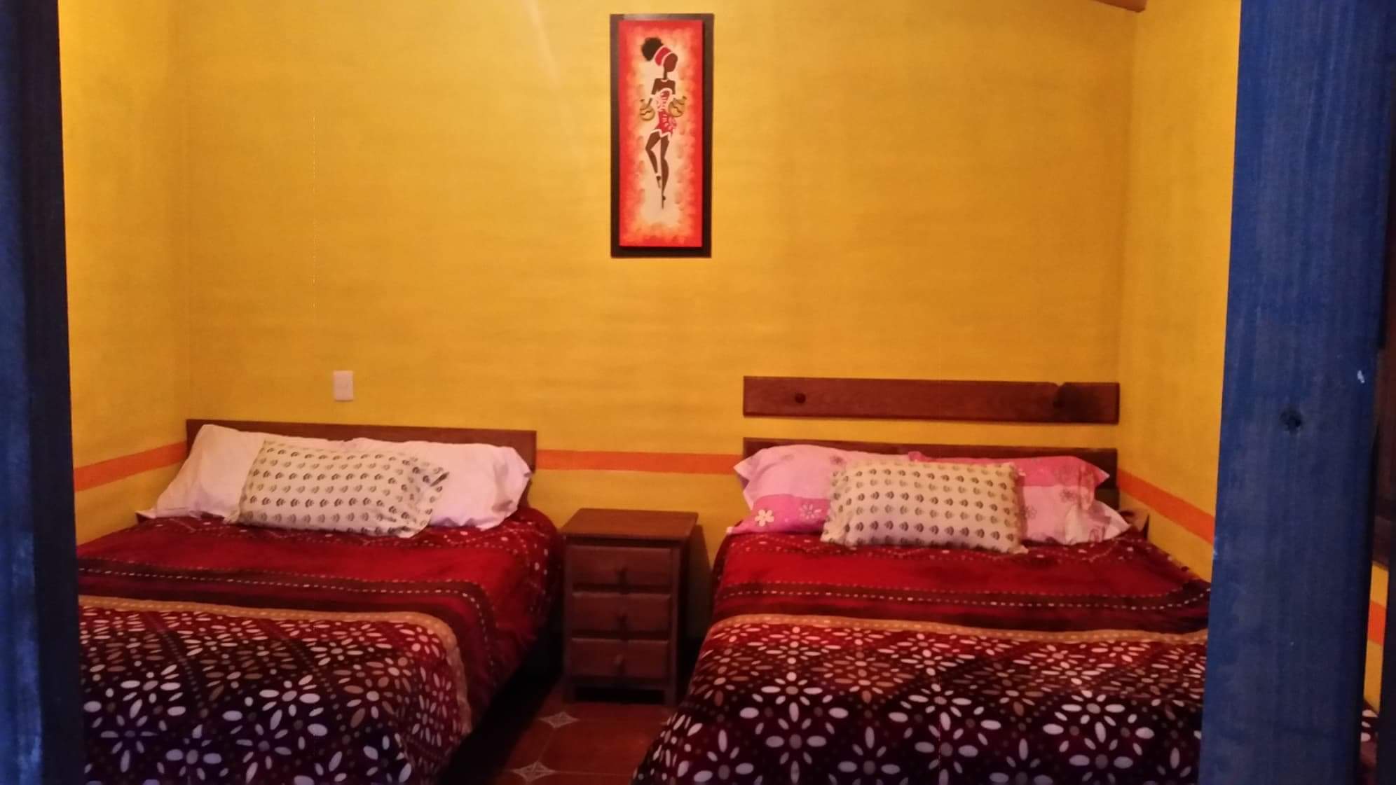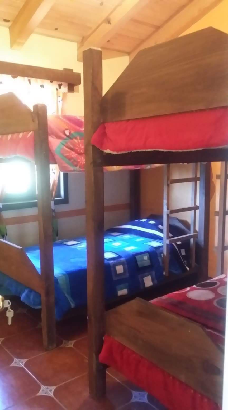 2 habitaciones cada una con una cama matrimonial y tambien esta un sofacama, cocina equipada, chimenea, tv con cable, y asador