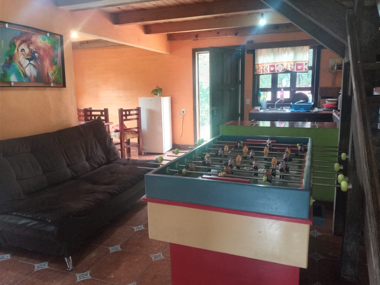 Tres habitaciones, dos baños, chimenea, terraza con asador, tv con cable, wifi y futbolito.