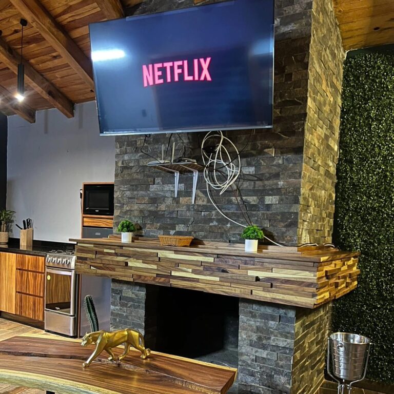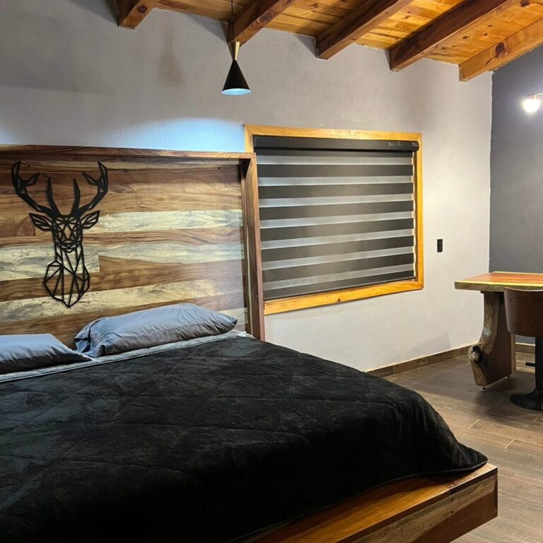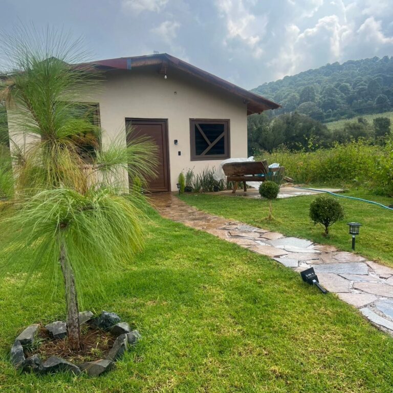 3 Recámaras: Principal con cama king size y sofá cama, Jacuzzi, baño completo, TV, Wifi, 2da con una Cama Matrimonial, 3era con 2 Camas Matrimoniales y 2 Individuales, Amplia cocina equipada con barra (refrigerador, microondas, licuadora, cafetera, estufa, utensilios de cocina) Comedor, Sala con chimenea, TV, Wifi, Futbolito, Bocina Alexa, otro Baño completo, Toallas, Agua Caliente, Hermosa Terraza con asador, Fogatero, areas verdes, Espectacular vista.