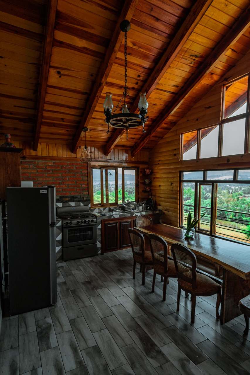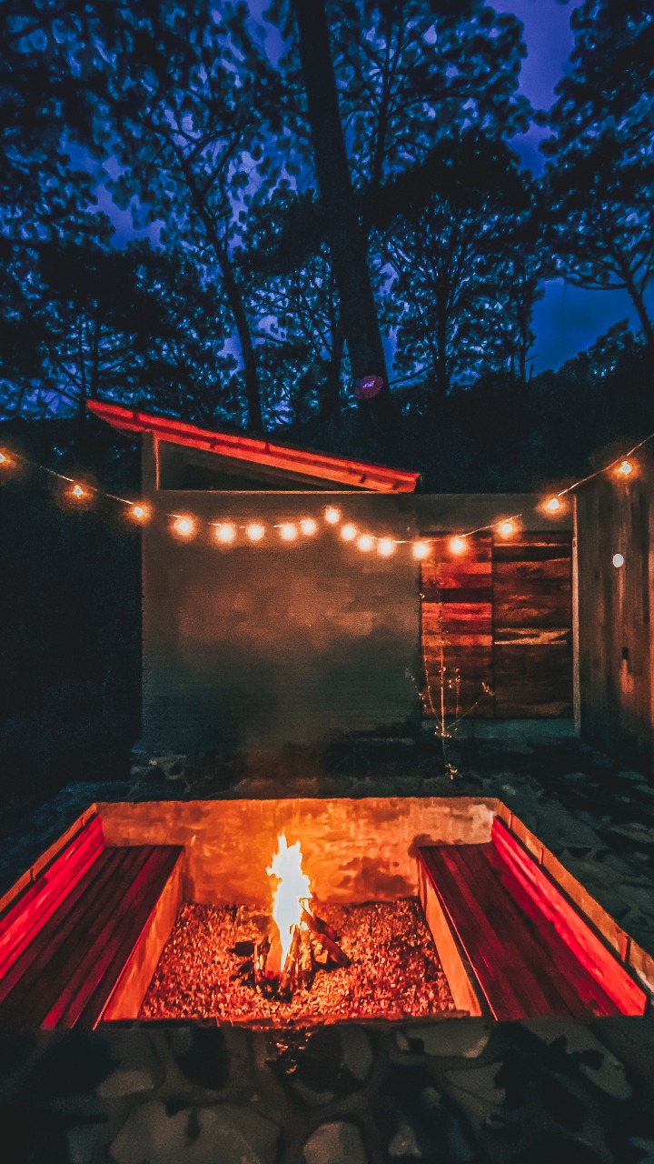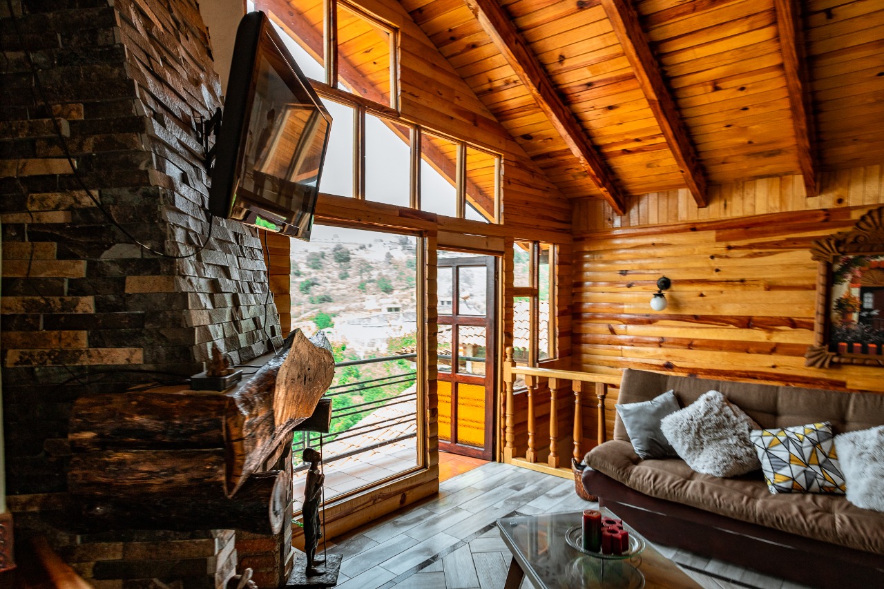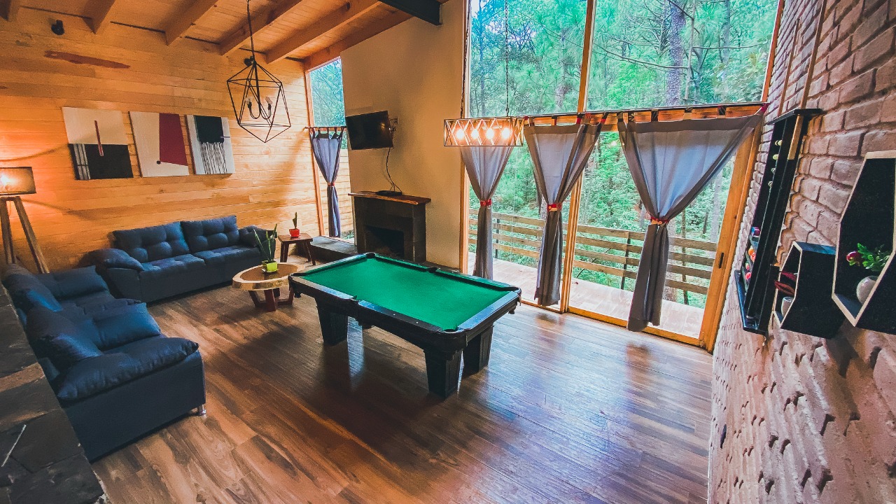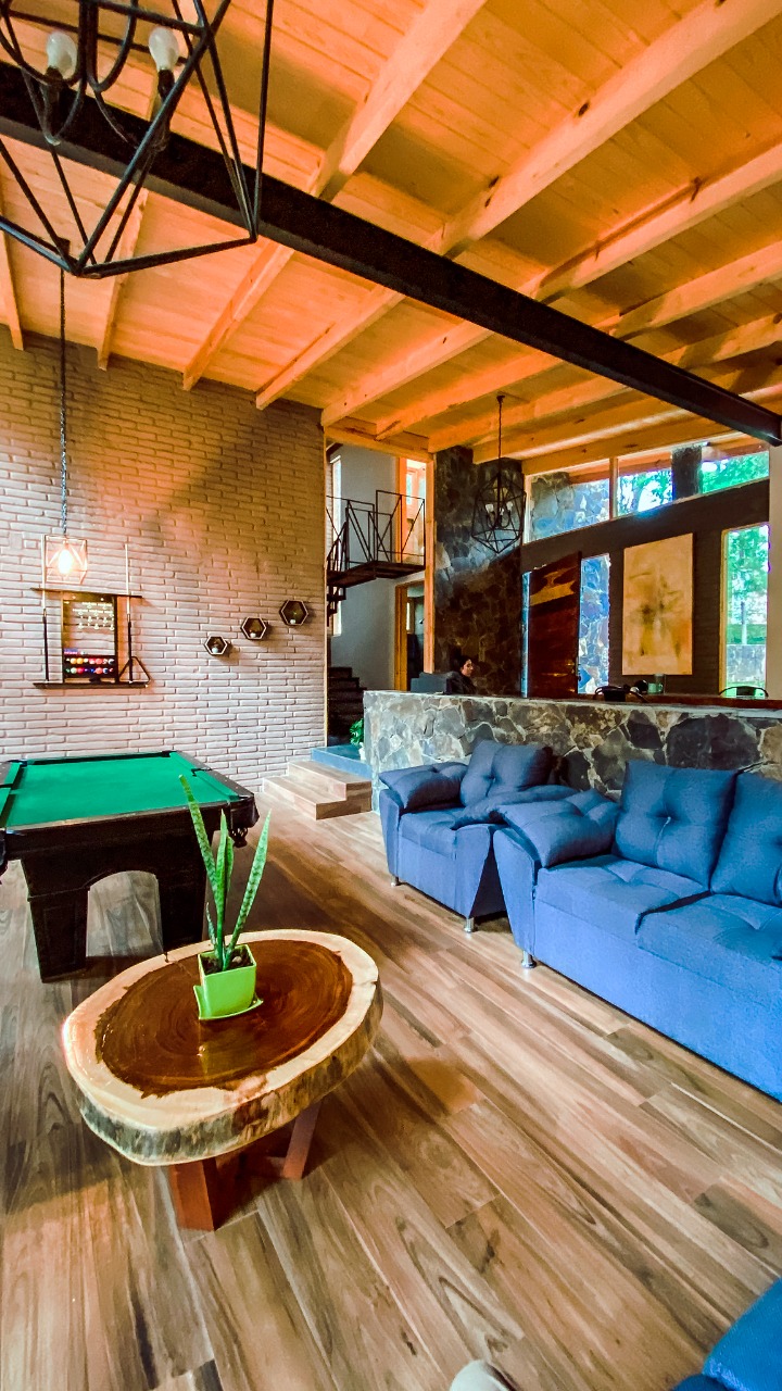 Ubicada dentro del fraccionamiento de los cazos en zona boscosa diseñada y pensada para pasar un momento increíble tiene una capacidad desde 2 hasta 12 personas cuenta con 3 habitaciones mesa de billar 2 chimeneas, 3 baños completos Jacuzzi 2 TVs con cable WIFI terraza privada asador Fire pit cocina equipada todos los servicios (Agua , Lus y Gas )