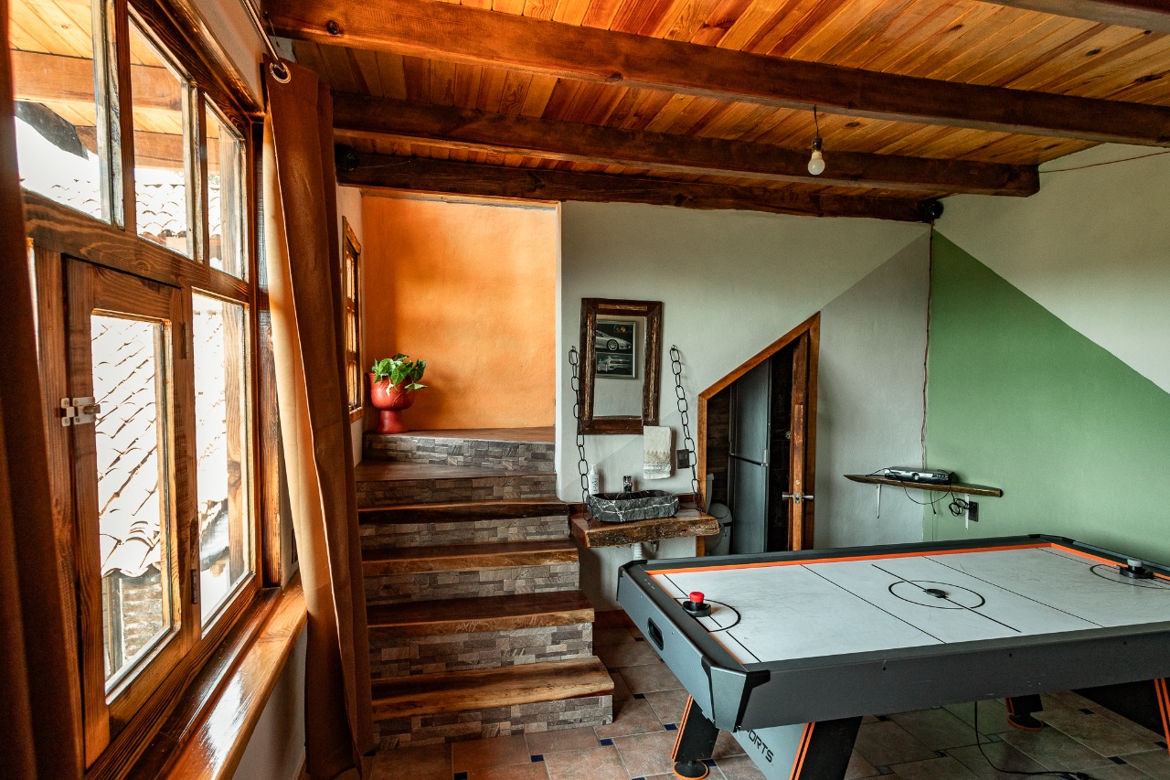 tiene una capacidad para 13 personas, cuenta con 3 habitaciones chimenea salón de juegos