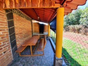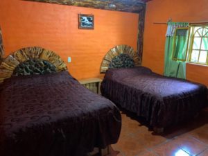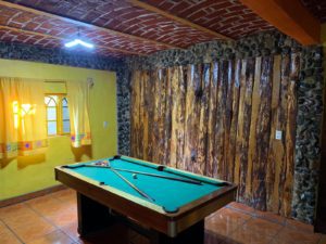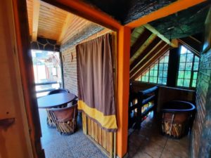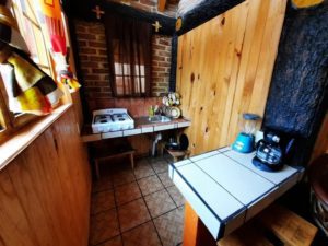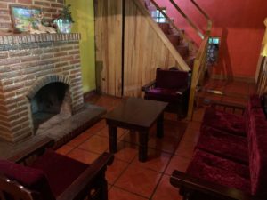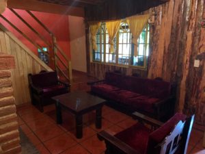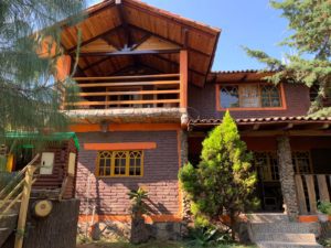 Esta cabaña cuenta con todos los servicios esta ubicada al iniciar el bosque a solo 7 minutos del centro cuenta con 4 recamaras, 6 camas matrimoniales y 1 king size, 2 baños completos, terraza, chimenea, asador, tv con cable, wifi, agua caliente, área verde, columpios, casita para que jueguen los niños, estufa, refrigerador, cafetera, licuadora etc…