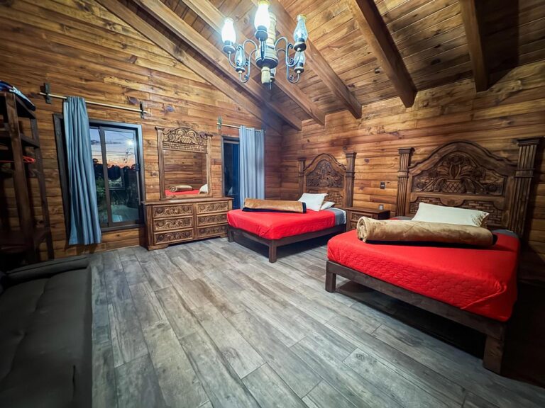 Cuenta con 4 recámaras (la primera habitación tiene 1 cama King Size, y las 3 habitaciones restantes tienen 2 camas matrimoniales cada una cuenta con 2 baños completos 1 en parte baja y otro en parte alta.