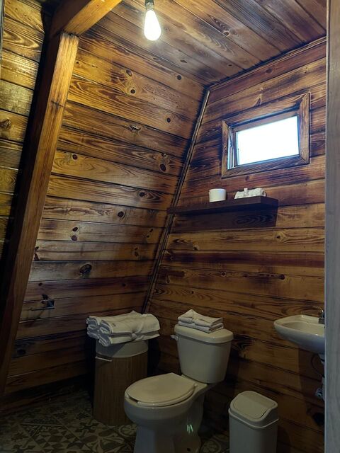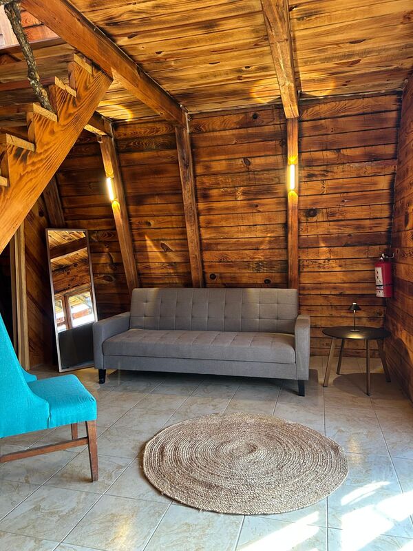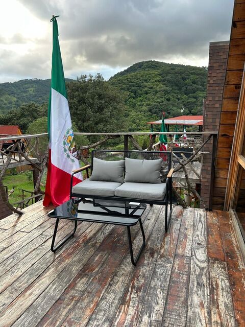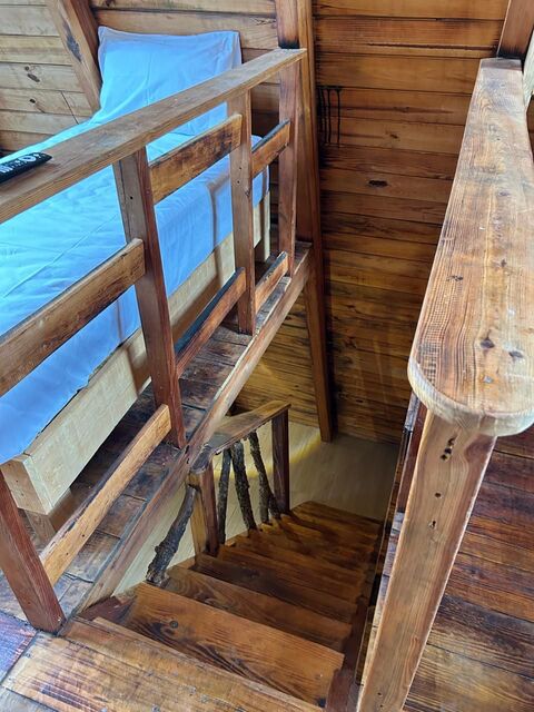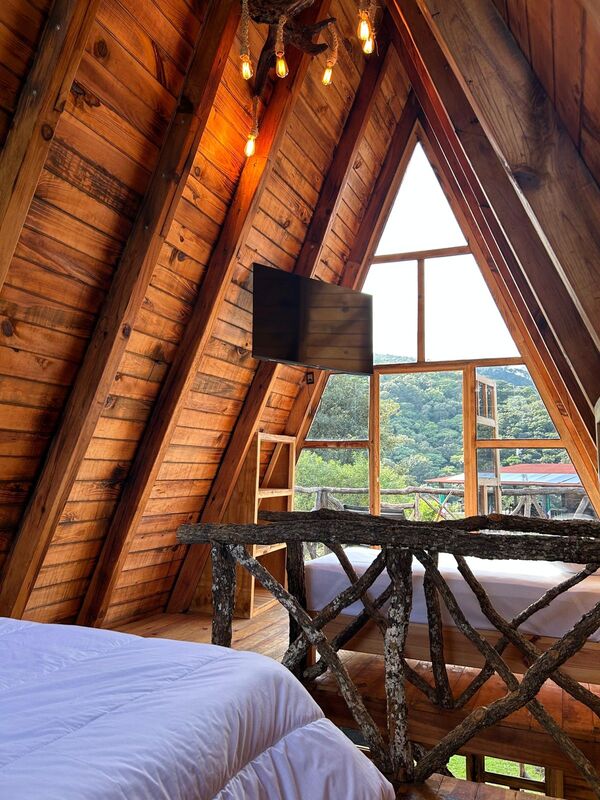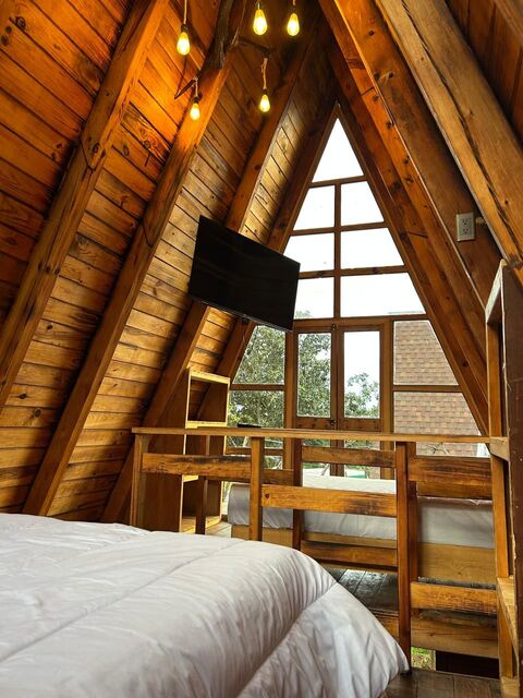 Cuenta con camas cómodas, baño completo, terraza con vista al bosque y estacionamiento.