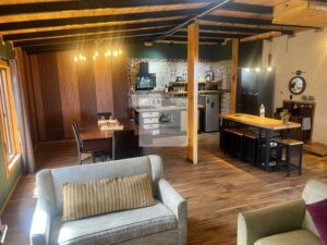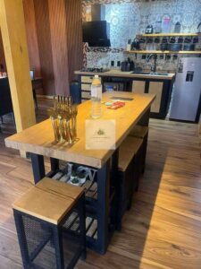 COCINA FULL EQUIPADA CON ESTUFA, MICROONDAS, HERVIDOR ELÉCTRICO, CAFETERA, TAZAS, VASOS CUBIERTOS ETC.